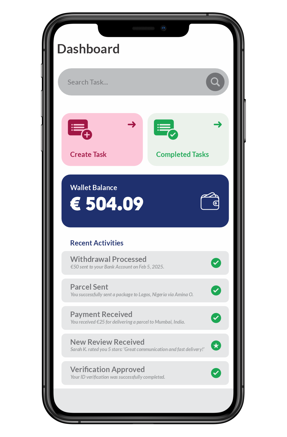 Duteko is a digital marketplace that connects immigrants with trusted travellers heading back to their home countries. By leveraging our platform, immigrants can send parcels through these verified travellers, reducing shipping costs while fostering trust within their community. Upon arrival, our partnered local couriers handle the last-mile delivery, ensuring the parcel reaches the recipient's doorstep quickly and securely.